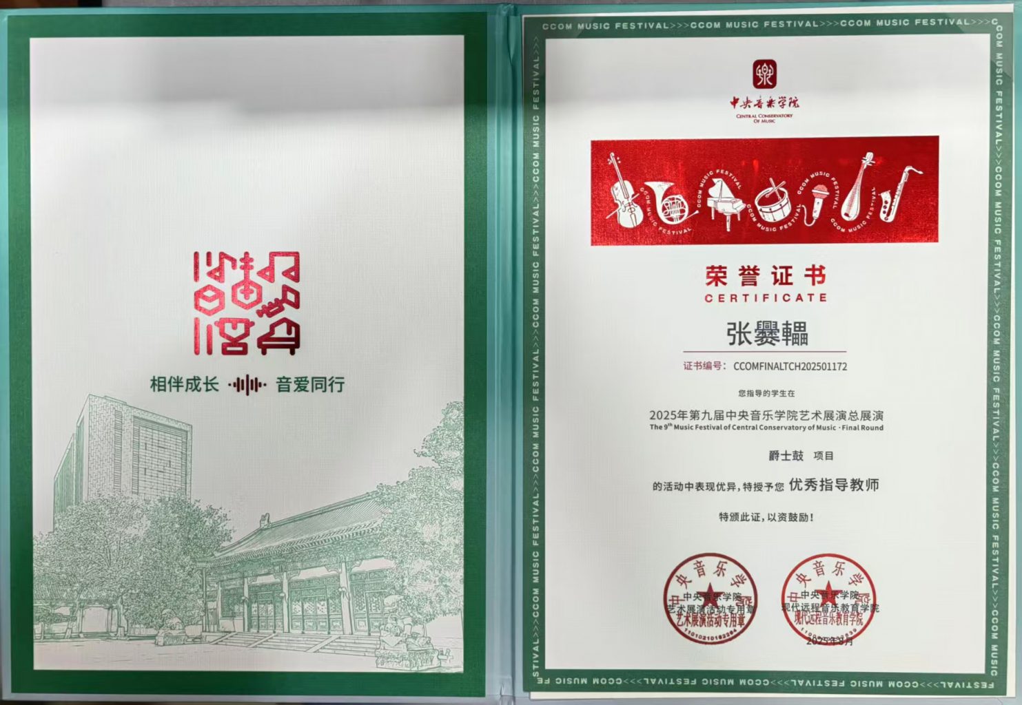 张爨轠学生在“第9届中央音乐学院艺术展演”中获奖记录留存