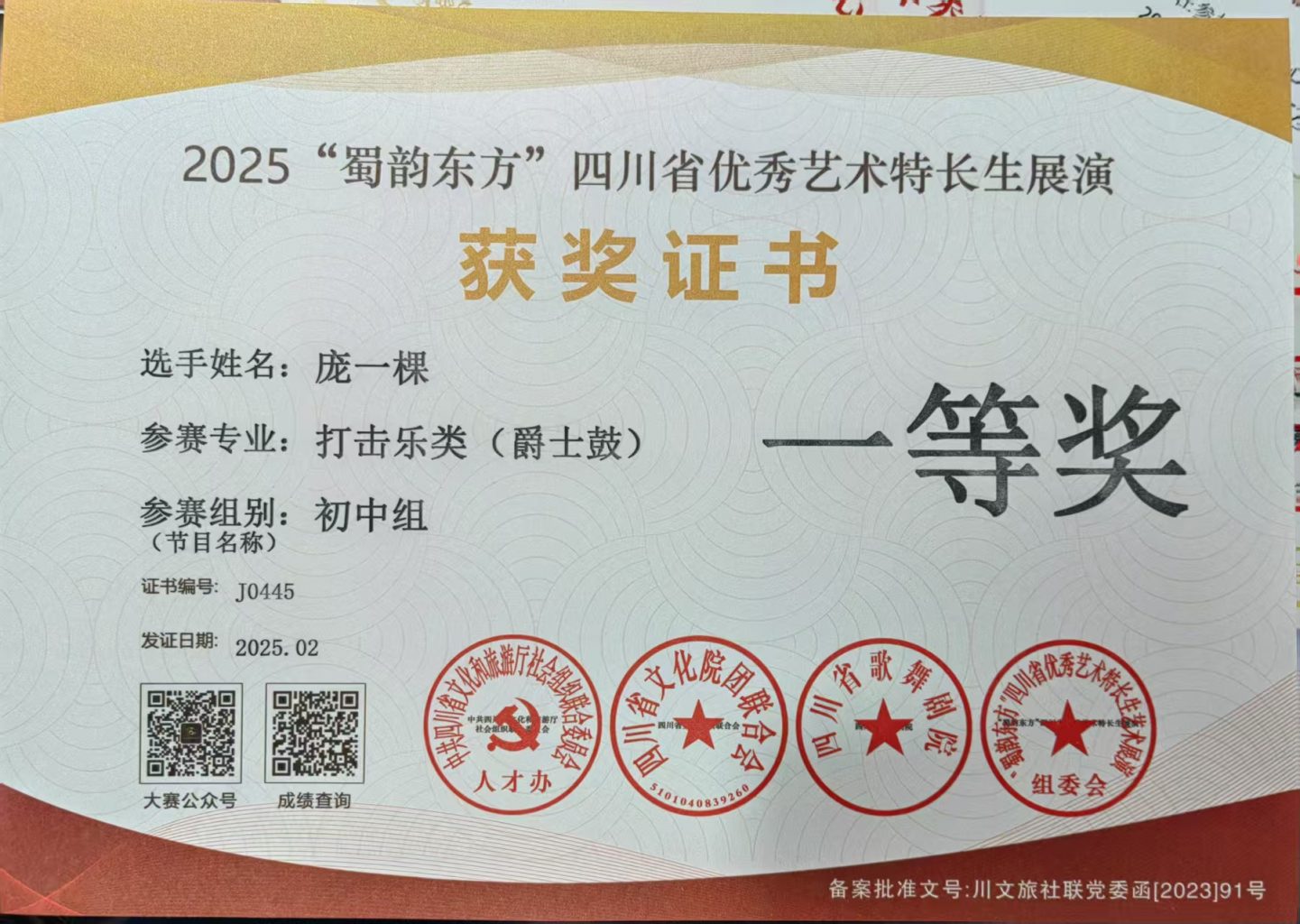 以下八十余张照片记录了2024年3月——2025年3月一年来的教学动态。这一年共获得21个一等奖、金奖、特金奖、和教师奖;四川省文化艺术中心和成都广播电视台两场爵士鼓评审;8个爵士鼓十级。