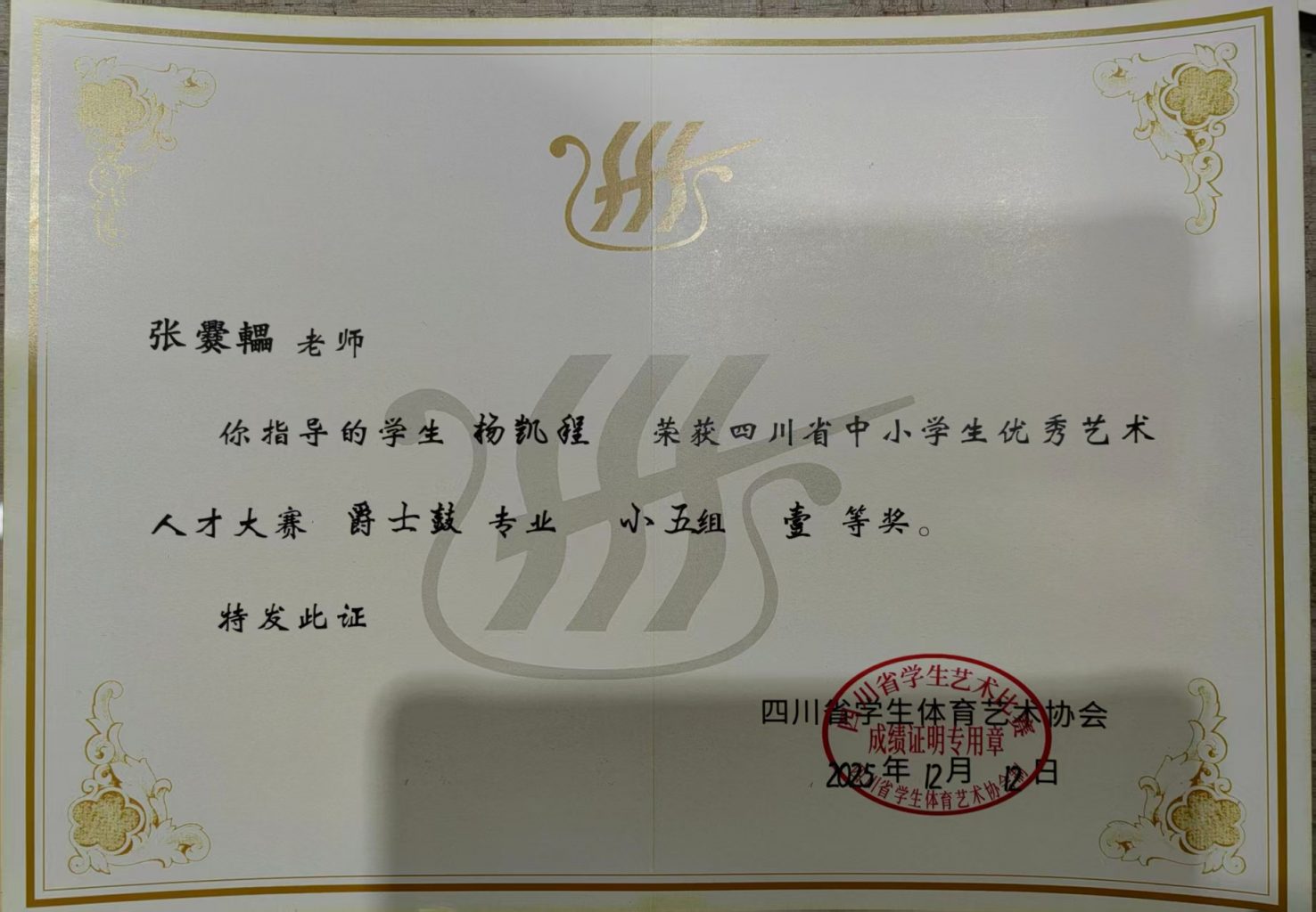 张爨轠(zhānɡ cuàn léi)2024年3月——2025年9月一年半内获38个一等奖和教师奖; 2025年(2025年1月1日——2025年12月31日)共计获得31个省级和全国总决赛金奖、一等奖、特金奖和教师奖记录留存